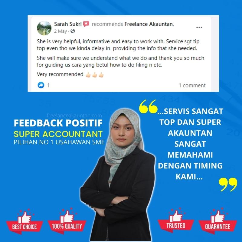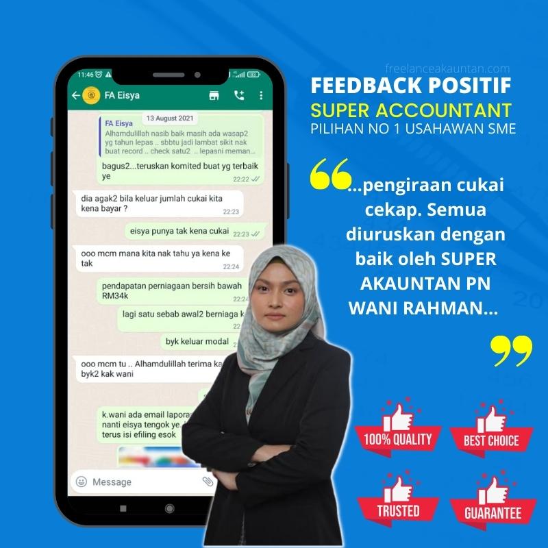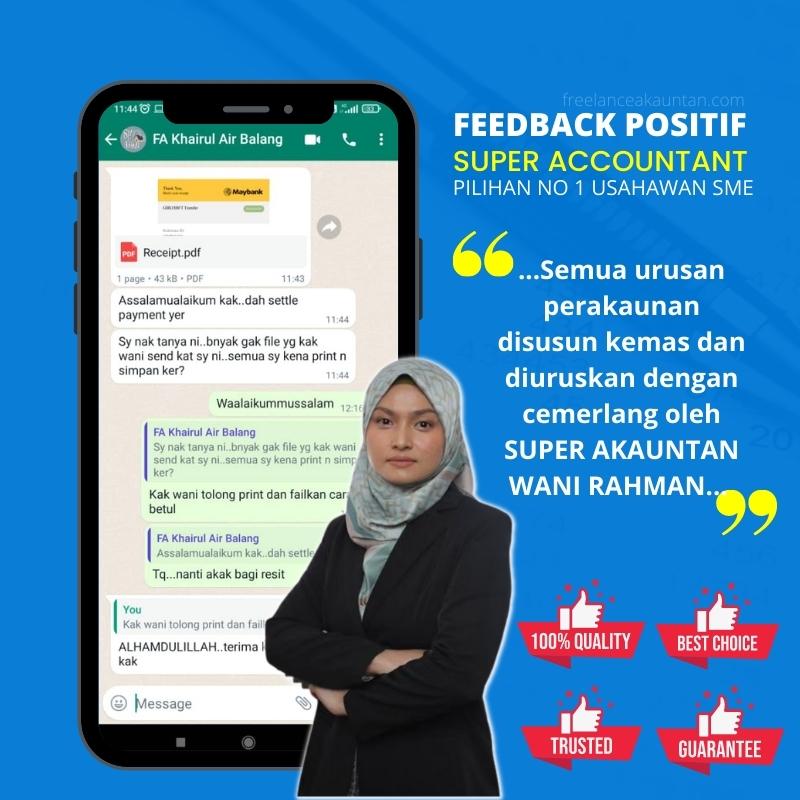 selepas urusan perakaunan saya selesai, rasa mudah sangat. Nak submit apa-apa dokumen untuk loan, mudah approved! Nak bayar cukai, nak bayar zakai, nak scale ke depan perniagaan, semua rekod telah diuruskan dengan mudah. Terima kasih servis unggul dan tip top Puan Wani Rahman!