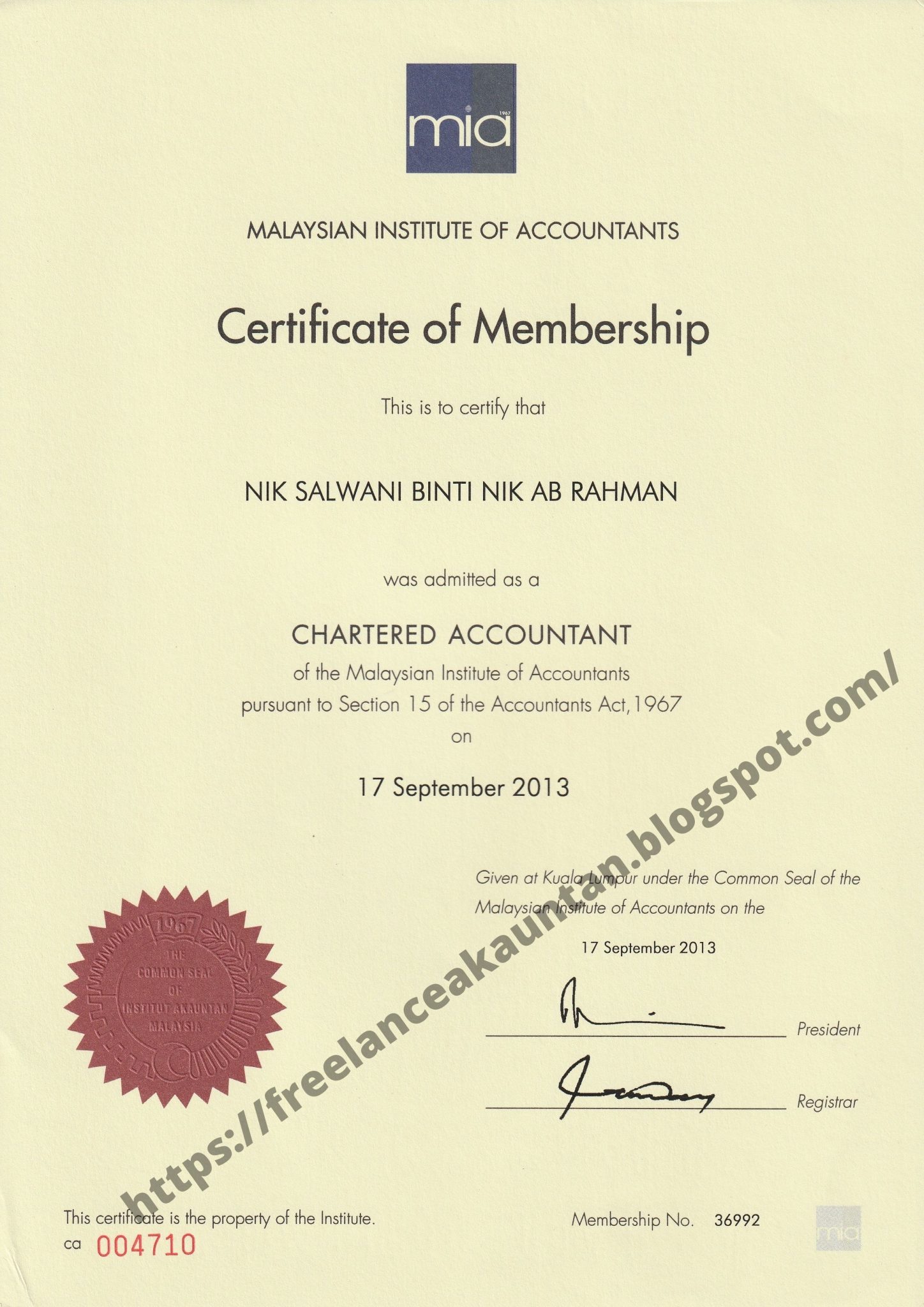 Diiktiraf Malaysian Institute of Accountants