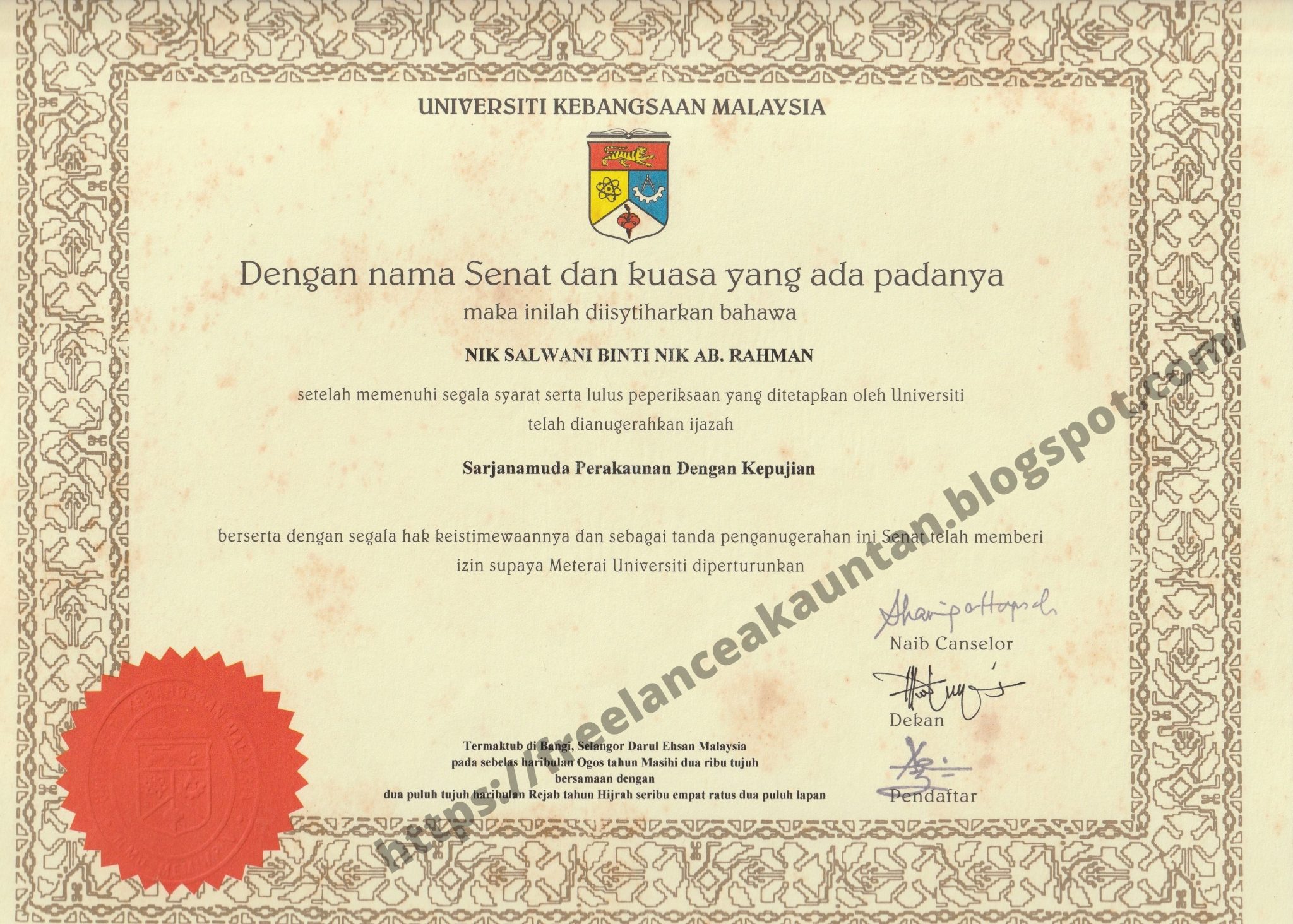 Pemegang Ijazah Perakaunan Universiti Kebangsaan Malaysia